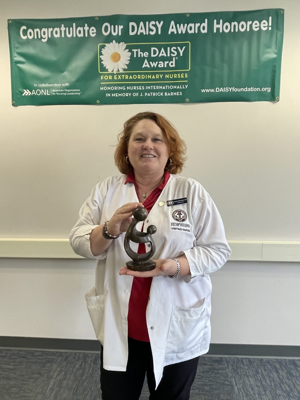 Congratulations to NMCRS Visiting Nurse Susan McKelvey, BSN, RN, IBCLC, our 2024 honoree for The DAISY Award® For Extraordinary Nurses! “I firmly believe that this Visiting Nurse played a huge part in saving my husband’s life and saving my family.”- DAISY Award® nomination patient quote.